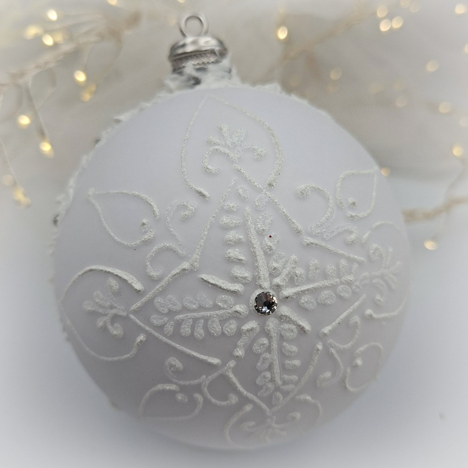 Bombka akrylowa, ręcznie dekorowana masą samoutwardzalną, ręcznie malowana. Zdobienie wewnątrz bombki. Średnica 10cm.