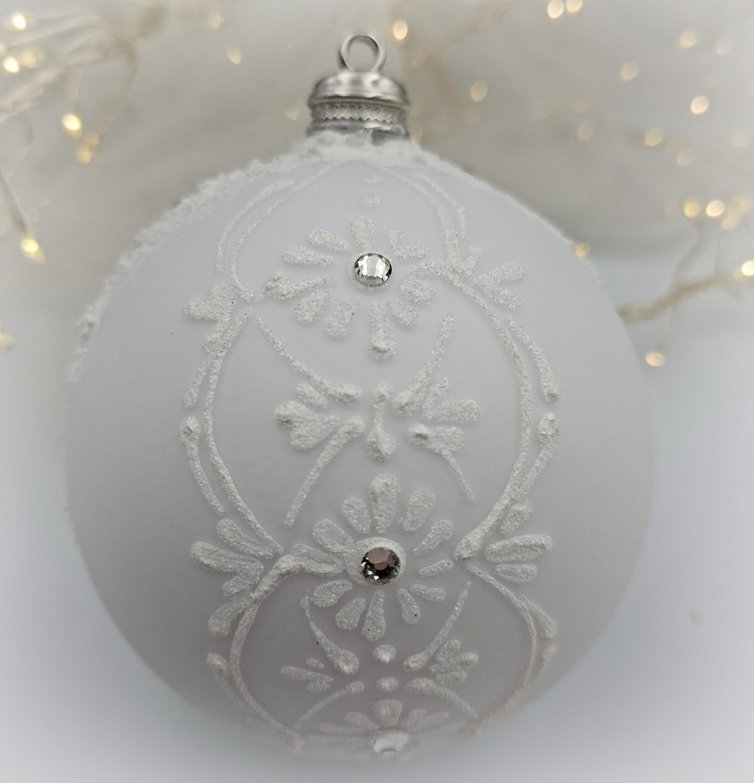 Bombka akrylowa, ręcznie dekorowana masą samoutwardzalną, ręcznie malowana. Zdobienie wewnątrz bombki. Średnica 10cm.
