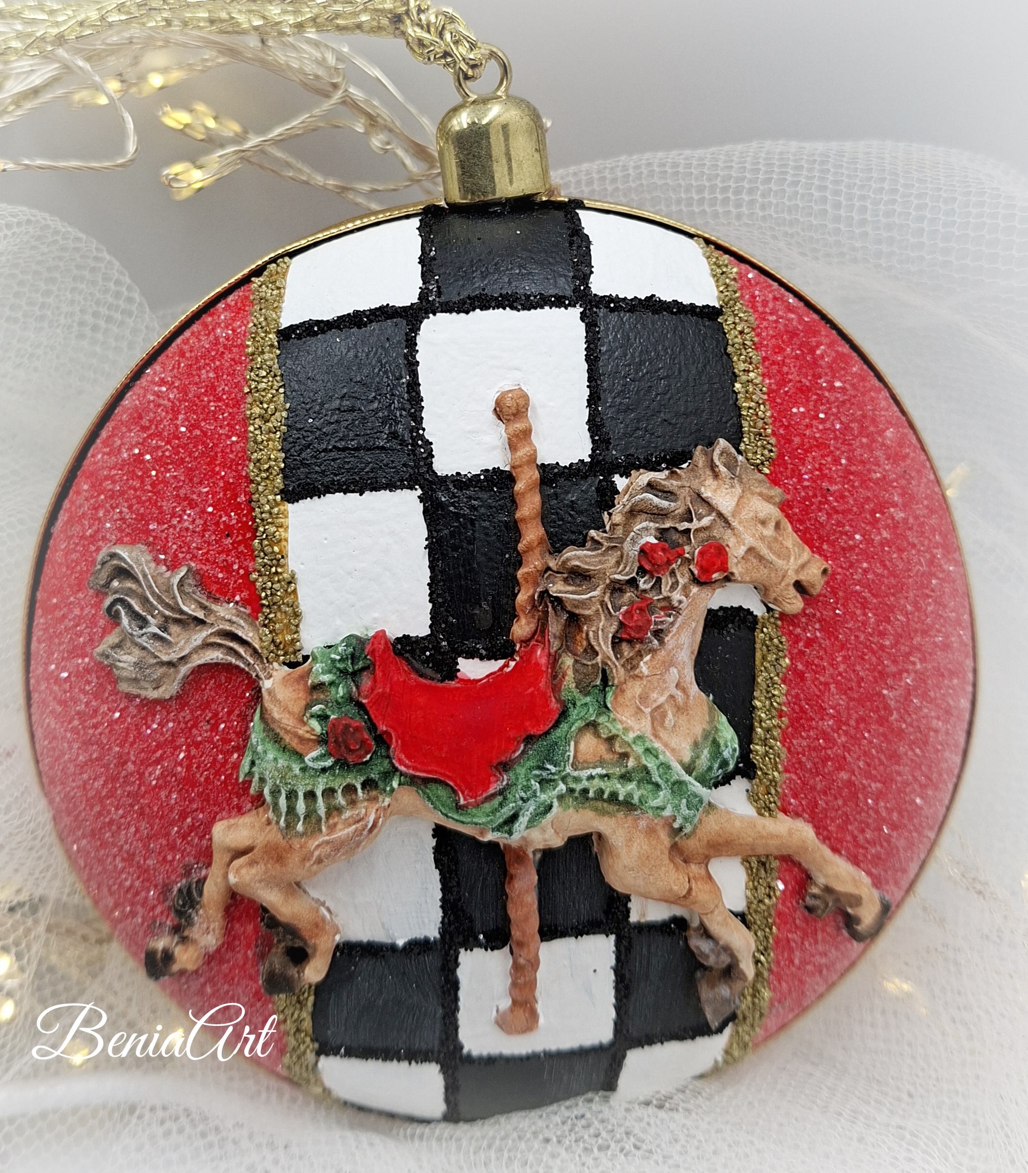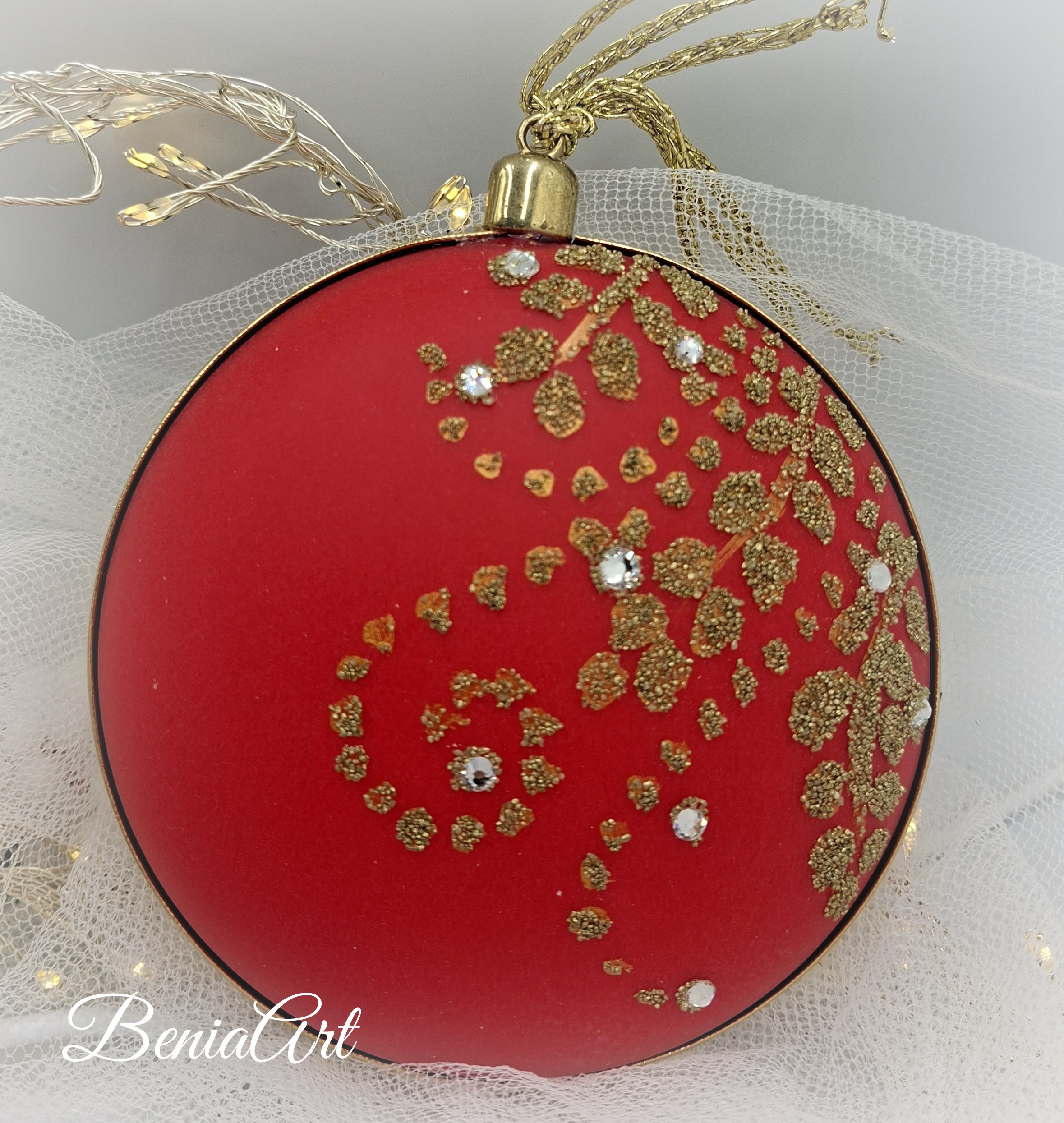 Bombka akrylowa / medalion, ręcznie dekorowany masą samoutwardzalną, ręcznie malowany. Średnica 12cm.