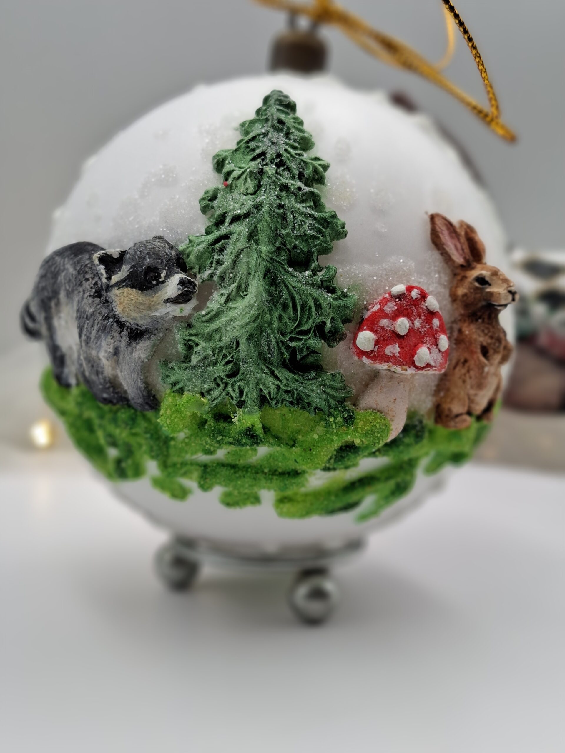 Bombka akrylowa, ręcznie dekorowana masą samoutwardzalną, ręcznie malowana. Średnica 10cm.